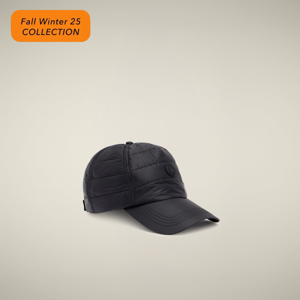 今シーズン、「ACHILLEA」モデルのベースボールキャップで、瞬時にクールなスタイルを演出。キルティング生地に動物由来の素材不使用のソフトなパッドを採用し、クラシックな6パネル形状に硬めのブリム、同色ステッチ、前面に丸いロゴを特徴としています。