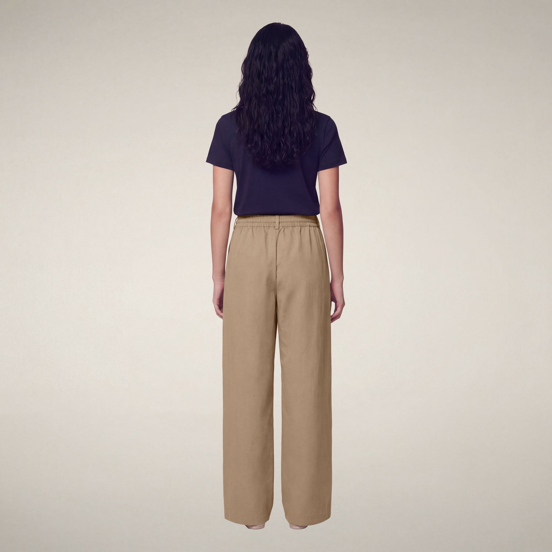 「ASAP」モデルのウィメンズパンツは、リサイクルポリエステルギャバジンを使用したモダンなキャロットフィット。軽やかな風通し、通気性、速乾性に優れ、ノーアイロンで楽に着こなせる着心地と、毛玉になりにくいのが特徴です。フロントはジップ&ボタン、ウエストはバックゴム、ベルトループ、フロントダーツ、サイドポケットなど、細部にまでこだわったデザインです。スマートさを追求した、すっきりとしたライン、しなやかな着心地、そしてエフォートレスなスタイリング。