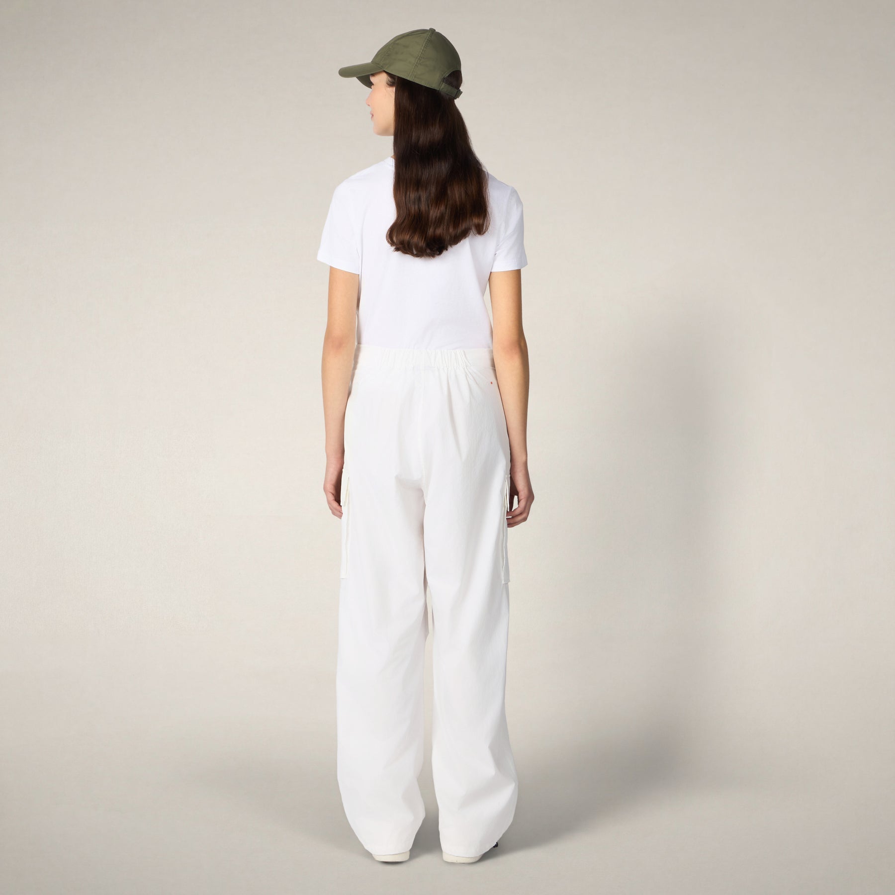 1分で準備完了。一日の始まりです。レディース カーゴパンツ 「Lays - OMW」 は、脚にカーゴポケット、両サイドにポケット、ドローストリングカフスでフィット感を調節でき、後ろのゴムウエストで快適性を高めています。軽量でスタイリングしやすく、夏の気ままなスタイルにぴったりです。