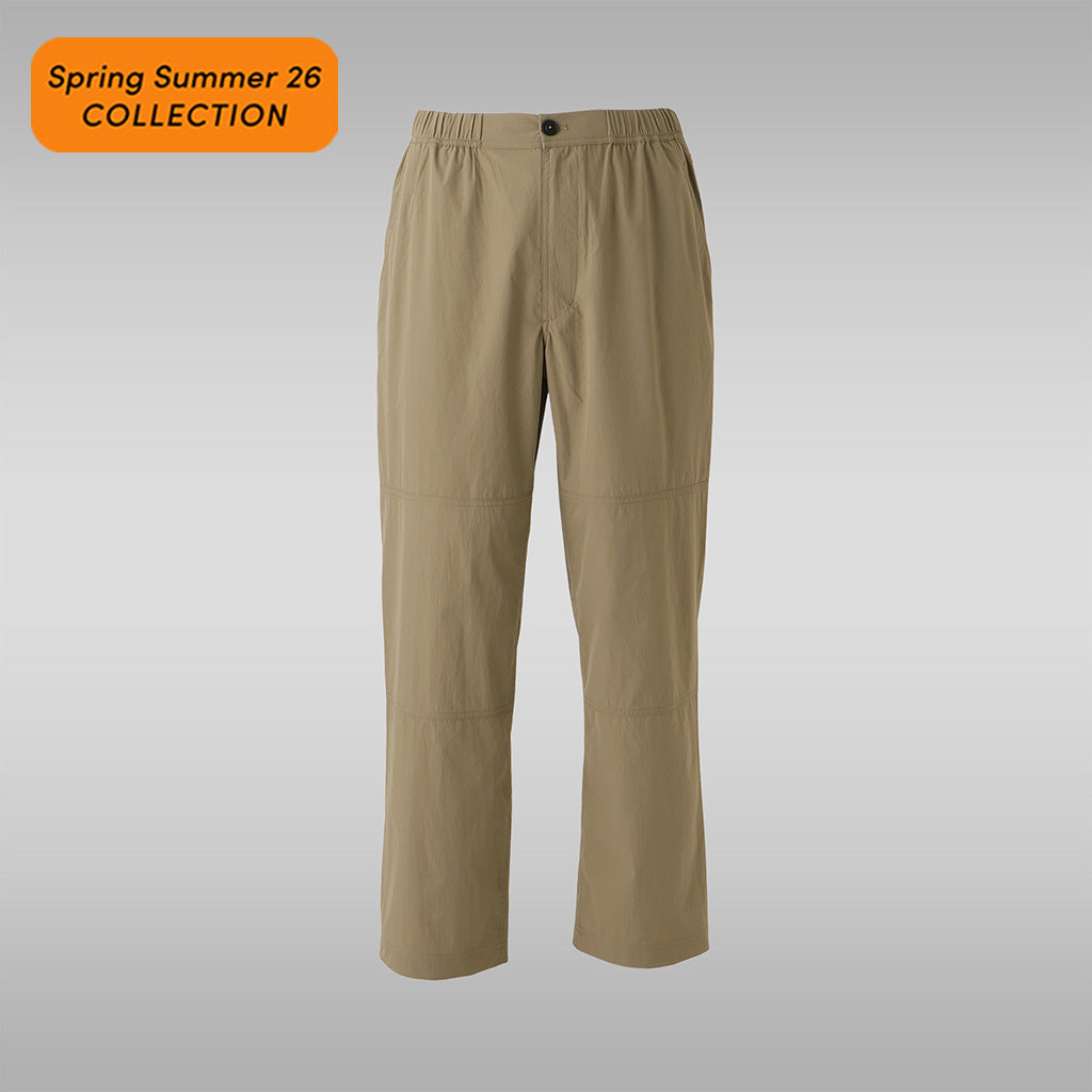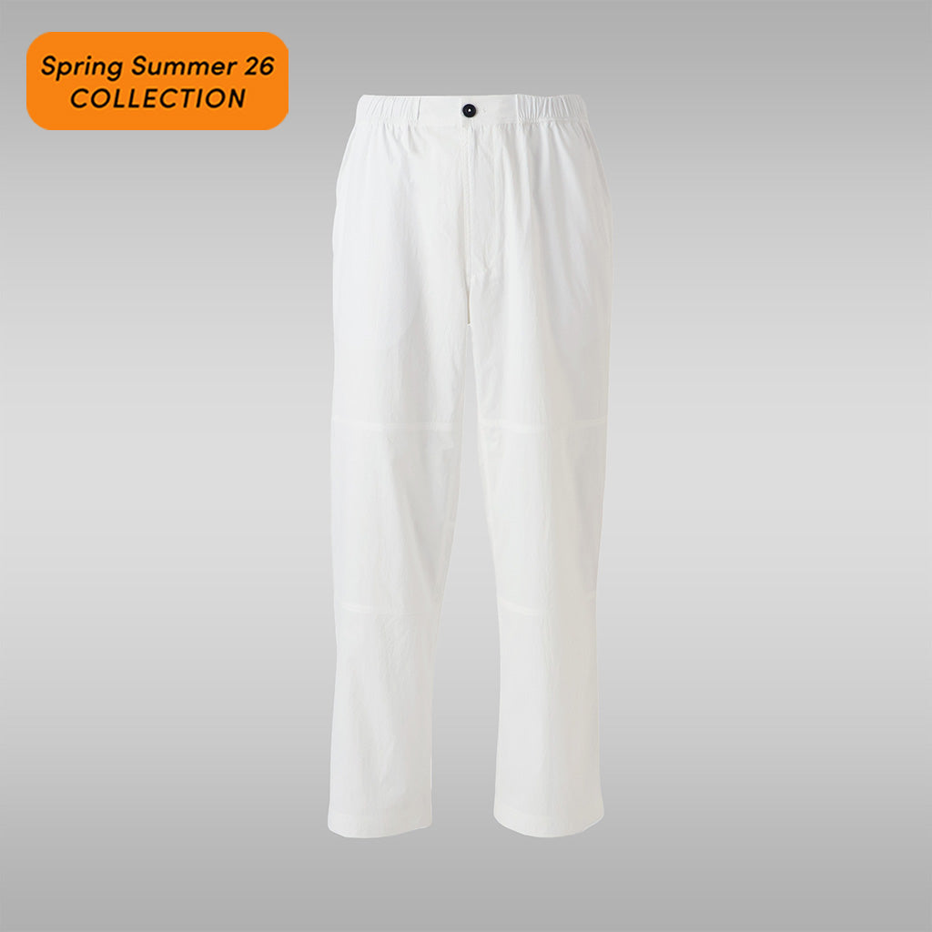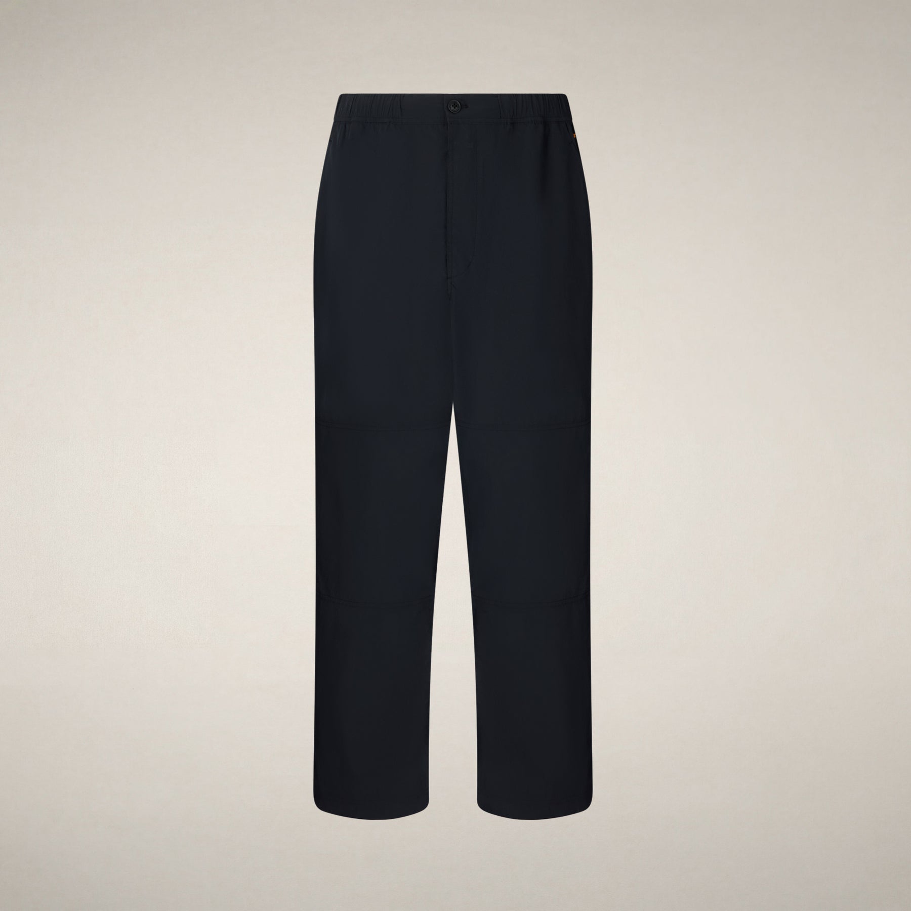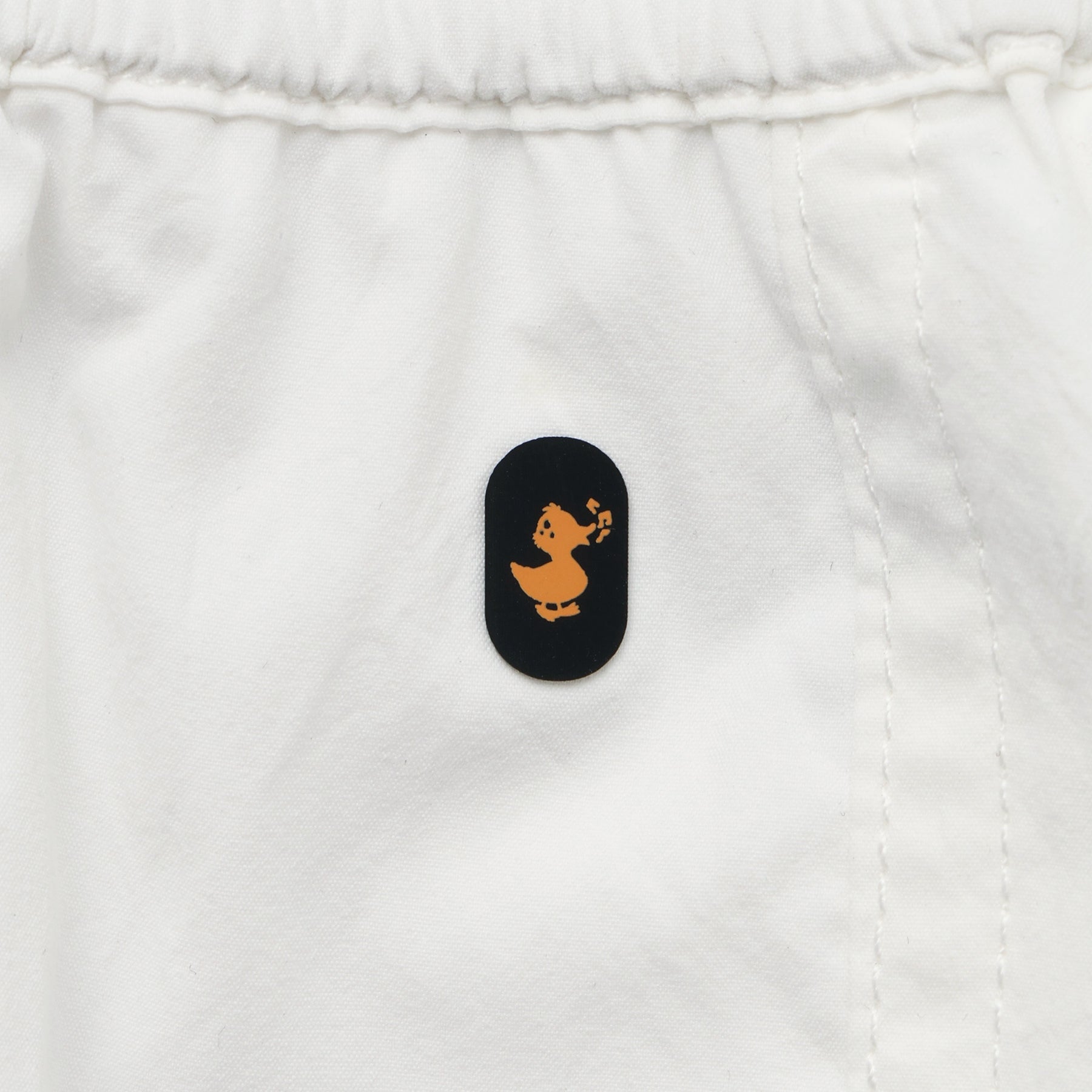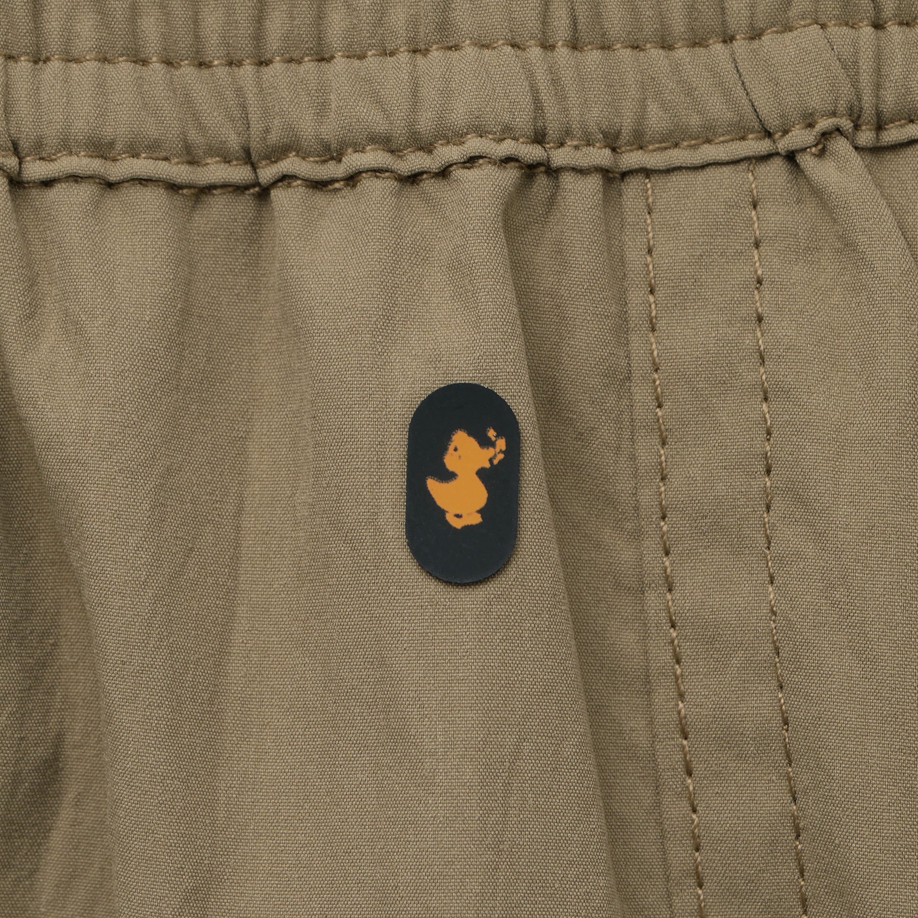 「One Minute Wardrobe」の気軽さを追求した「OMW」モデルのメンズパンツは、伸縮性のあるウエストバンドとドローストリング、サイドポケット、バックポケットを備え、快適な着心地を提供します。夏にぴったりの軽やかなリラックス感で、背面にはSAVE THE DUCKのロゴ、前面にはウエストバンドとポケットの間に小さなオレンジ色のアヒルのマークをあしらっています。