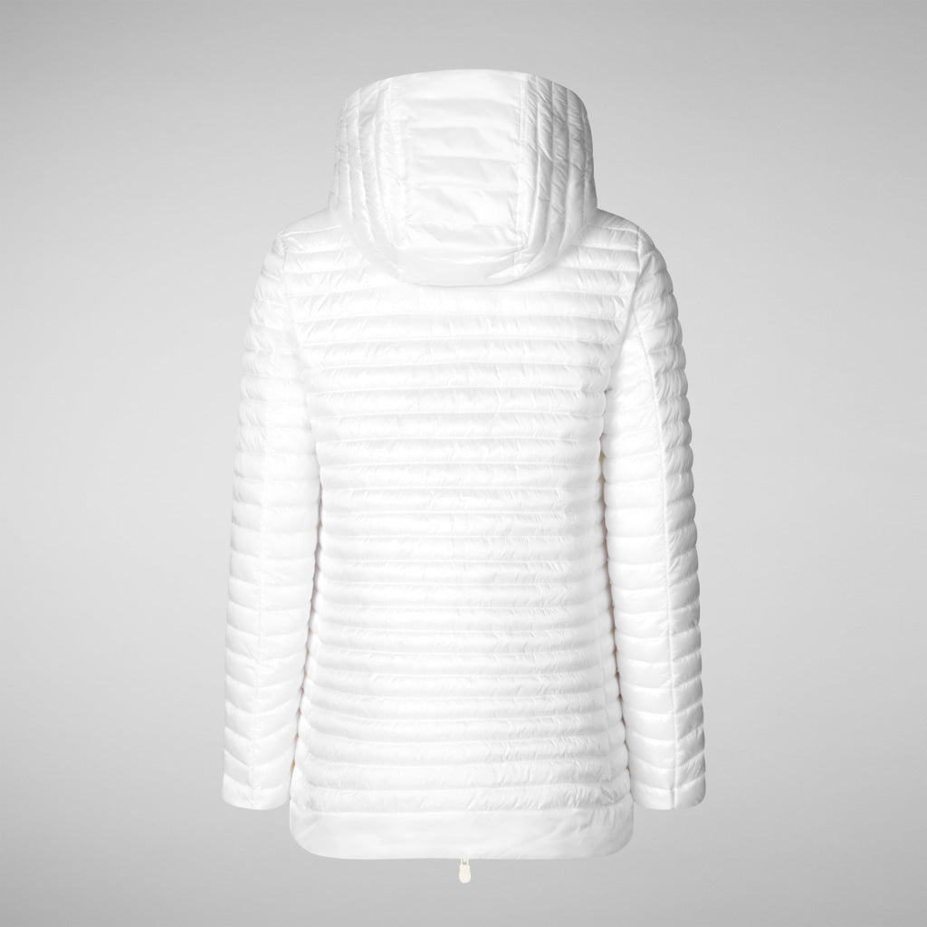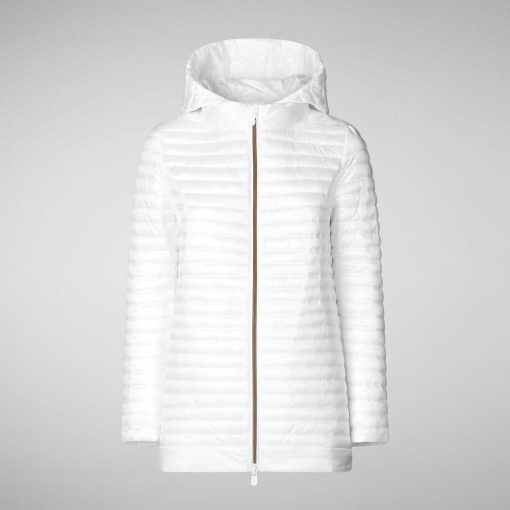 「ALIMA」キルティングジャケットは、Aラインカットが特徴で、裾の無地のバンドがエレガントなアクセントになっています。取り外し可能なフードを備え、軽量で持ち運びやすいデザインながら、快適さと保護力を確保しています。カスタムジッパーの引き手と袖の丸いロゴが、ジャケットにブランドらしさをプラスするシグネチャーディテールです。
