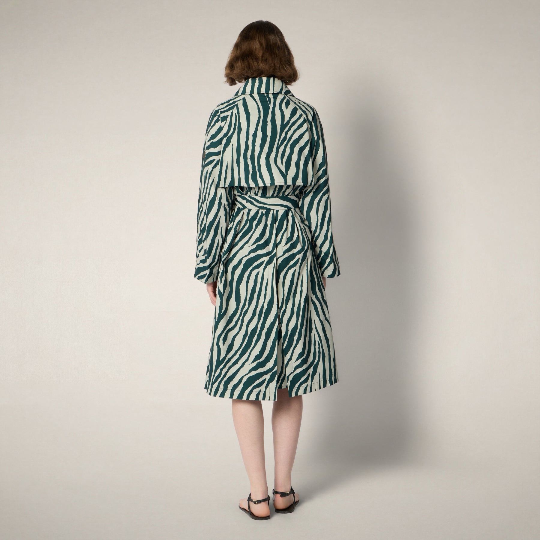 大胆でありながら軽やかな印象の「DANIELLE」モデルのウィメンズコートは、春夏にぴったりのゼブラ柄でトレンチコートの雰囲気を醸し出します。共布ベルト、ポイントカラー、フロントボタン、そして長めのシルエットにタブ付きの袖口と肩が特徴です。オーバーサイズのカットは、後ろのボタンタブでお好みのラインに調整できます。