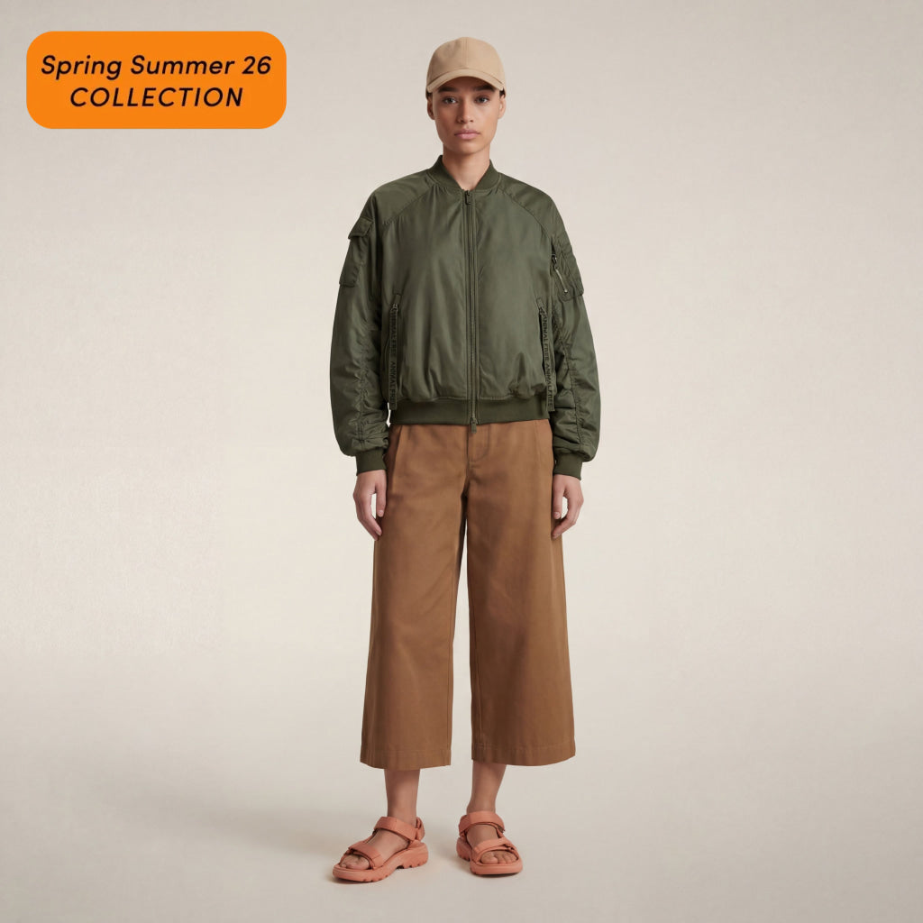 ストリートウェアとユーティリティを完璧に融合させた「LIL」ボンバージャケットは、オーバーサイズのフィット感と、ANIMAL FREEとプリントされたグログランのジッププルが付いたポケットが特徴的です。幅広のラグランスリーブと袖ポケットを備え、中央のダブルジッパーで開閉します。左袖の丸いロゴとカスタムメタリックのジッププルが、SAVE THE DUCKならではのアクセントを添えています。