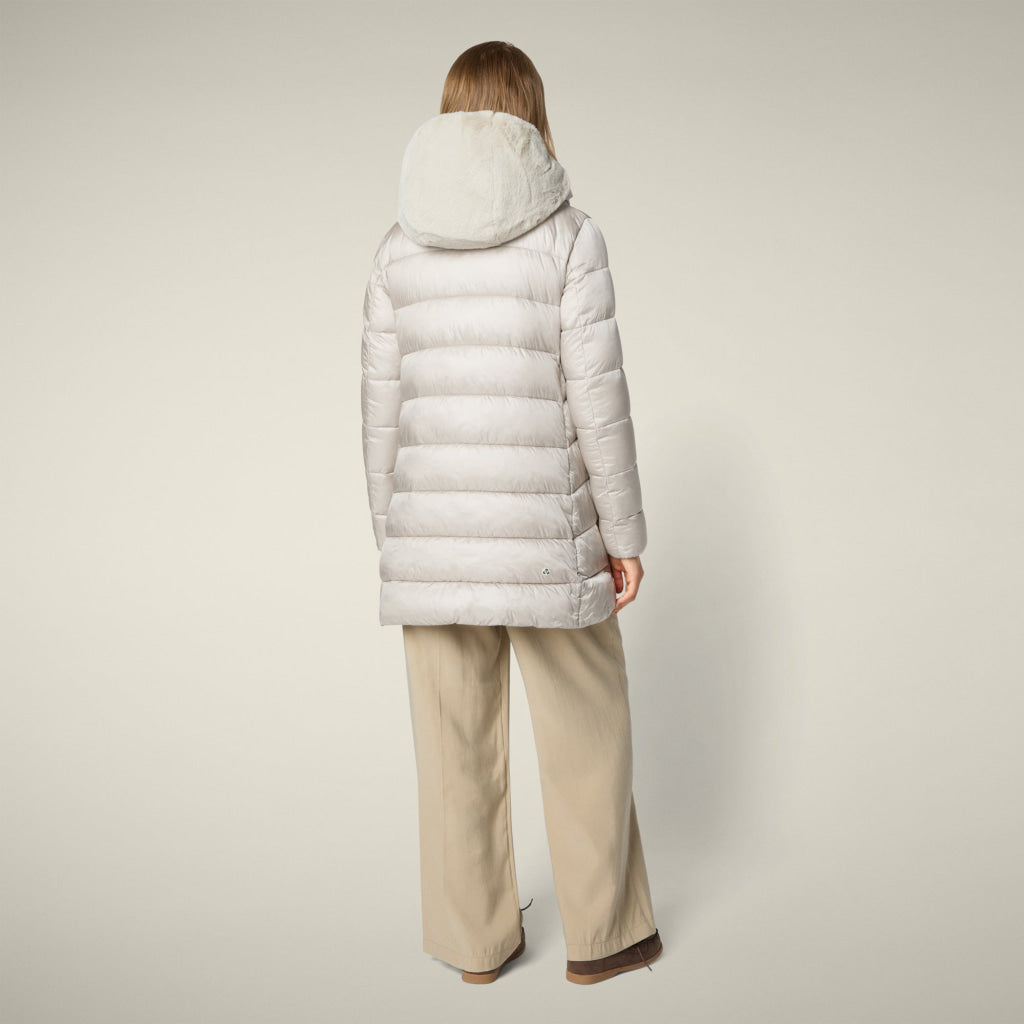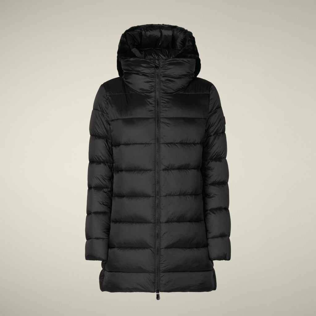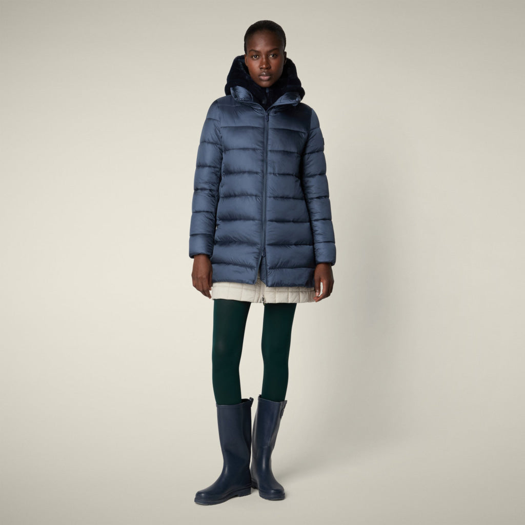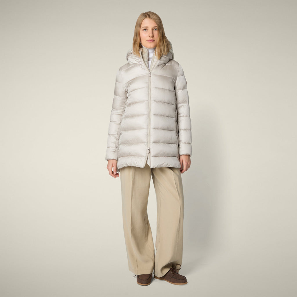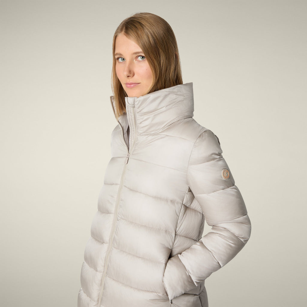 光沢のあるリサイクル・ナイロン製のAライン・ミドル丈パファー「MATILDA」は、同系色の取り外し可能なフェイクファーをフロントパネルとフードにあしらい、洗練されたタッチに。RECYCLED PLUMTECH®のパッド入りで保温性も抜群。シグネチャーの引手を備えた2WAYジッパー、隠しジッパー式ポケット、袖の同系色のロゴが特徴です。