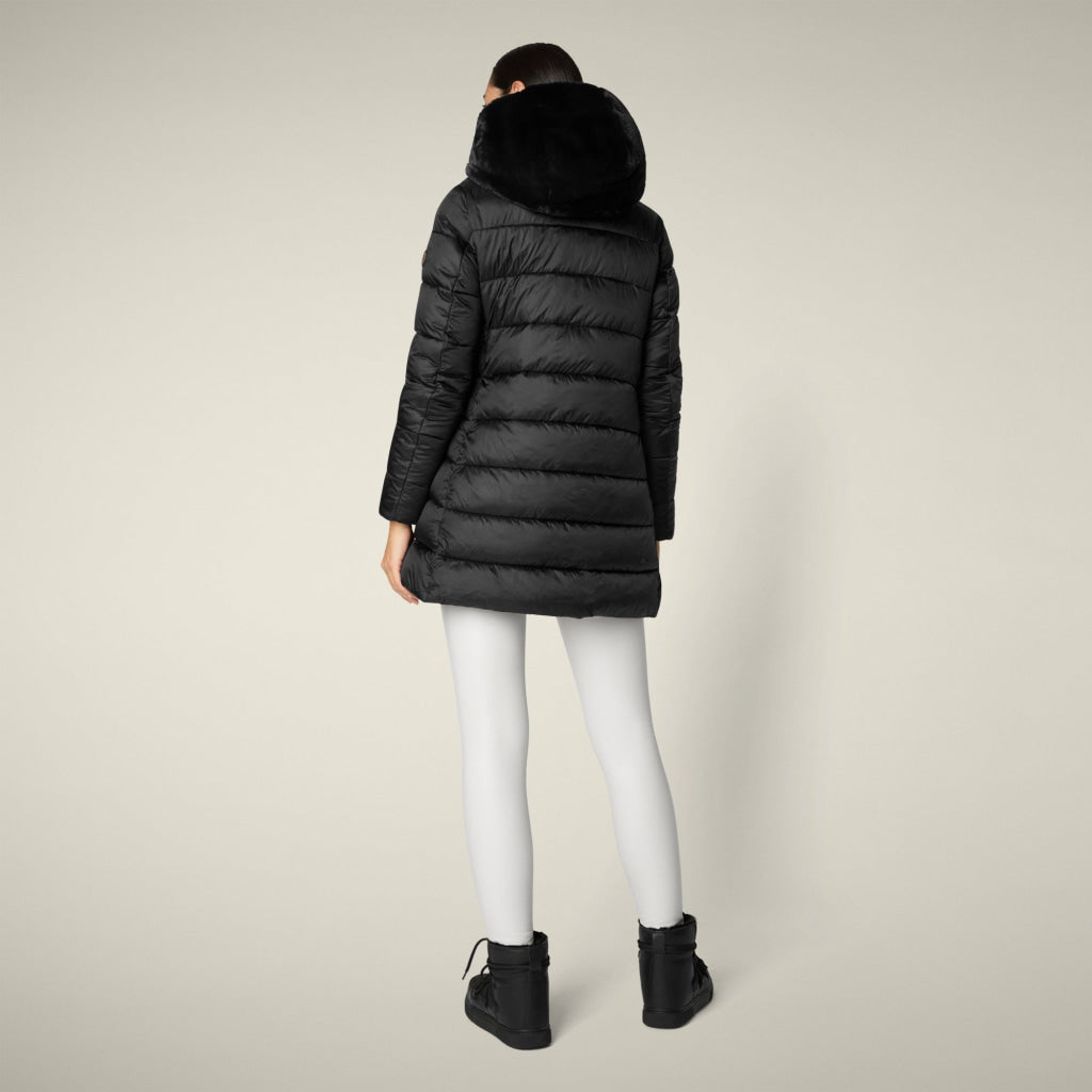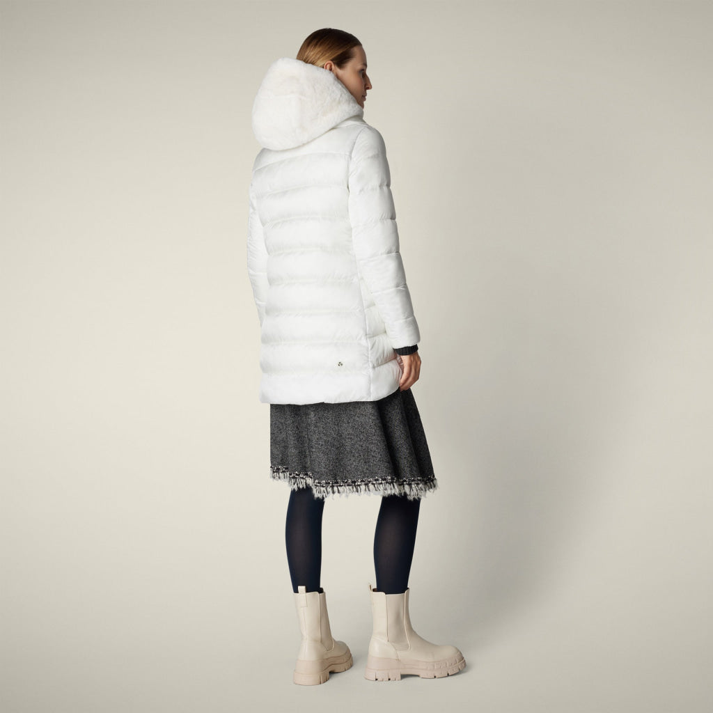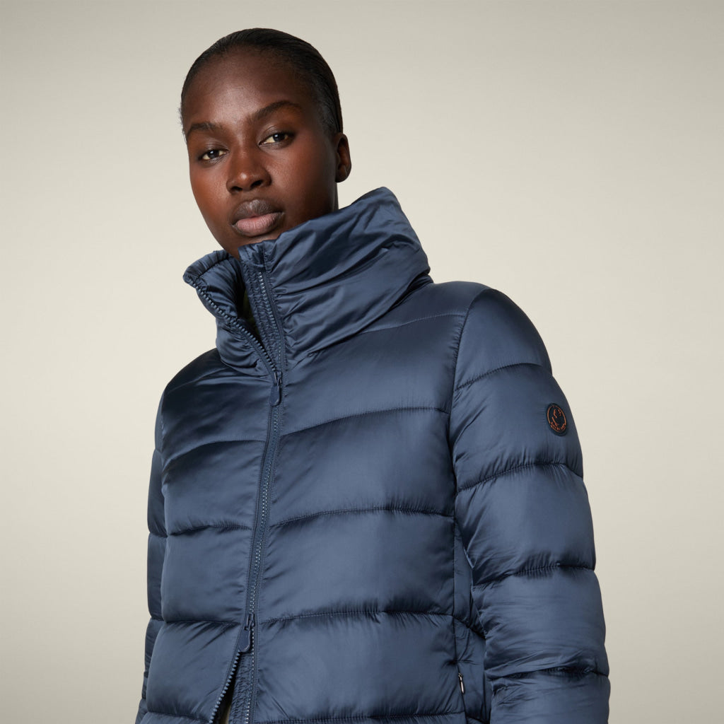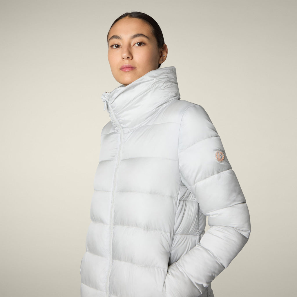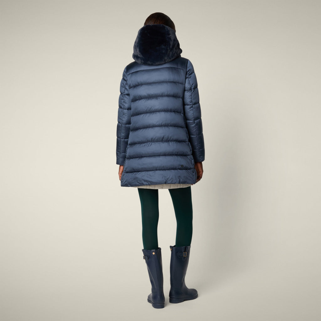 光沢のあるリサイクル・ナイロン製のAライン・ミドル丈パファー「MATILDA」は、同系色の取り外し可能なフェイクファーをフロントパネルとフードにあしらい、洗練されたタッチに。RECYCLED PLUMTECH®のパッド入りで保温性も抜群。シグネチャーの引手を備えた2WAYジッパー、隠しジッパー式ポケット、袖の同系色のロゴが特徴です。