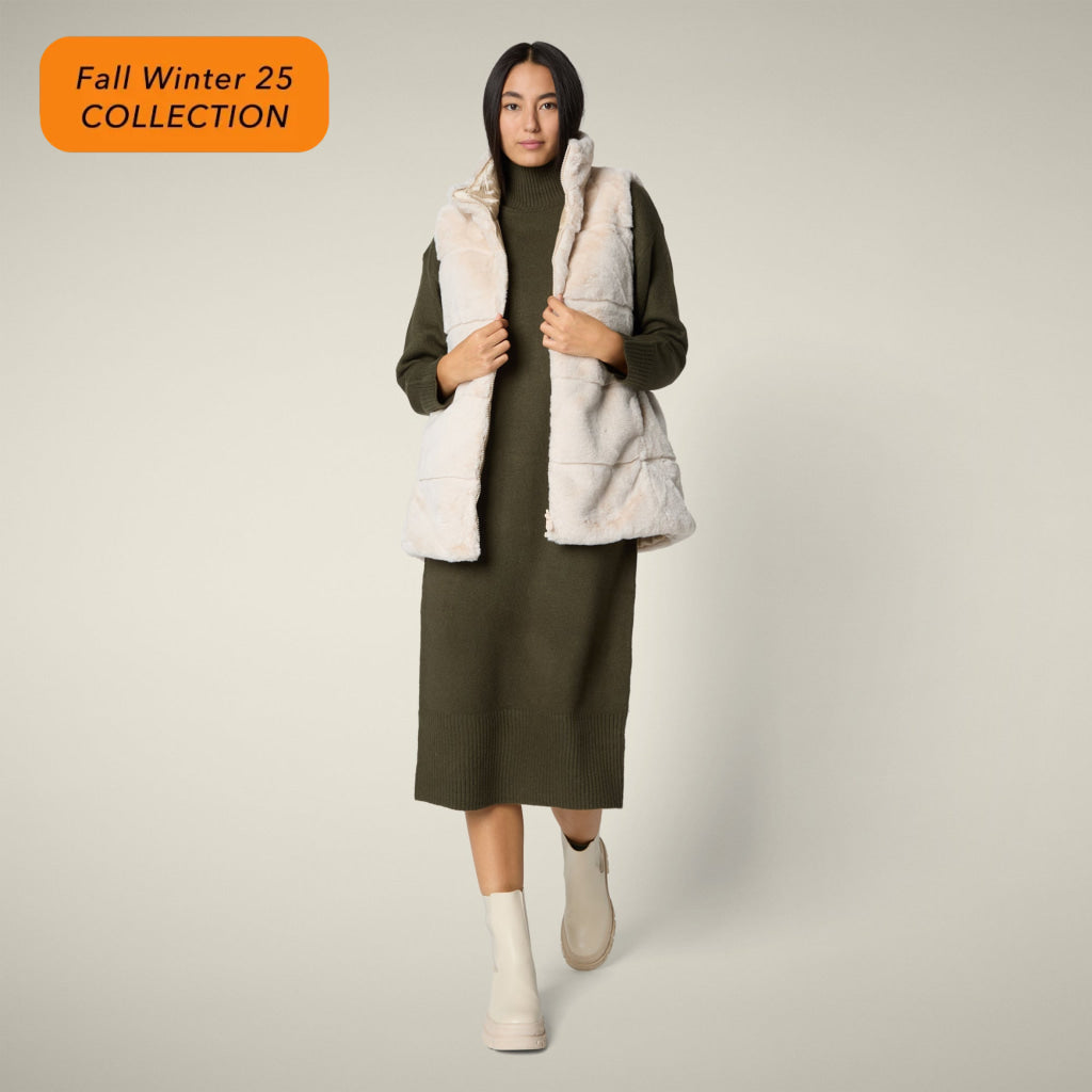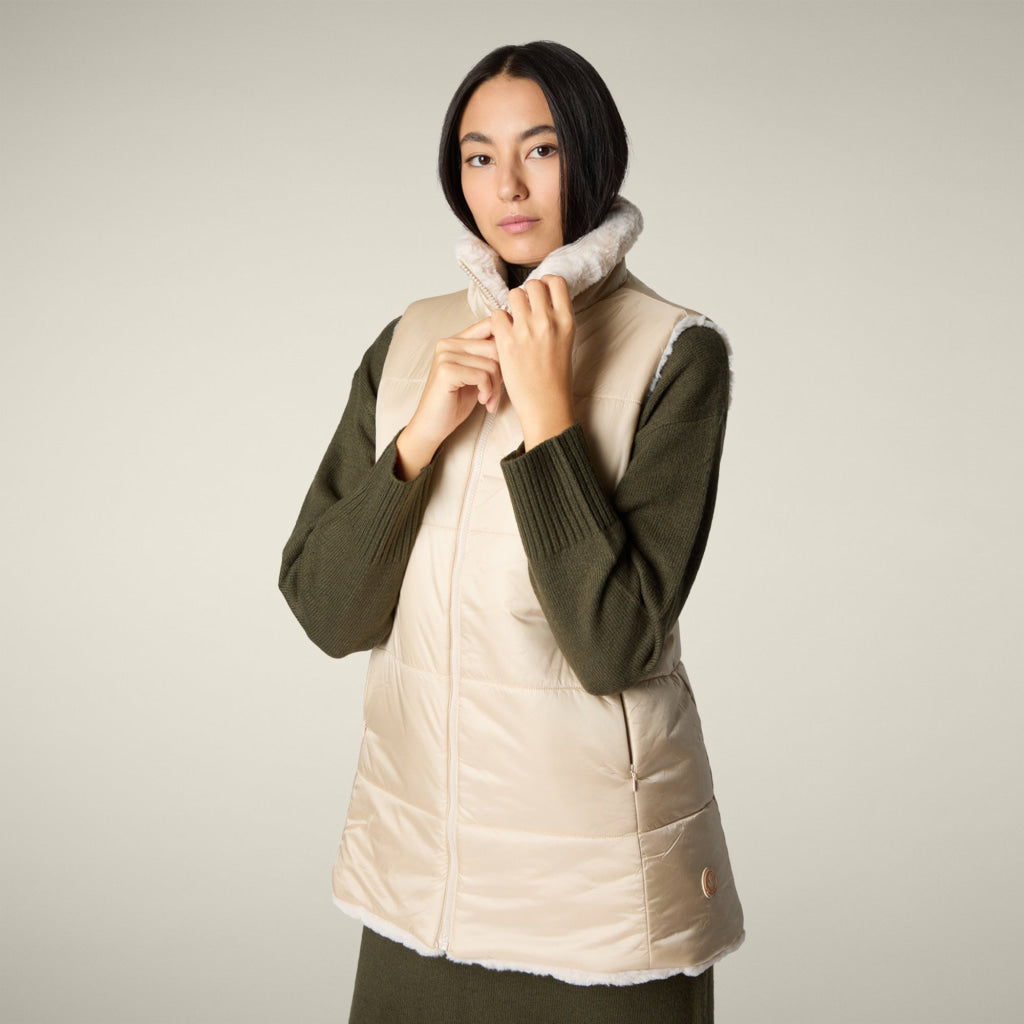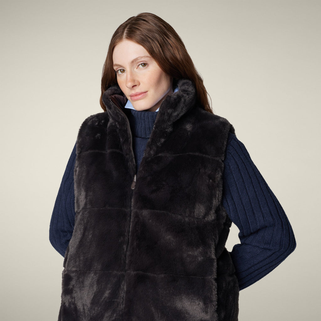 「NIVES」モデルのウィメンズ パファーベストで、瞬時にスタイルを変身させましょう。このリバーシブルデザインは、選択肢を倍増させ、どんなコーディネートも格上げします。キルティング面とふわふわのフェイクファー面を備えた、多機能なデザインが特徴です。スタンドカラー、2つのポケット、中央のジッパーにリバーシブルスライダー、カスタムプル、そしてコーディネートを完成させる同色の丸型ロゴが施されています。