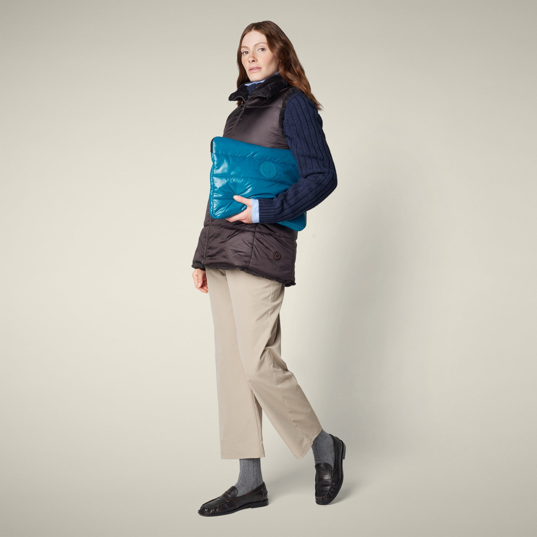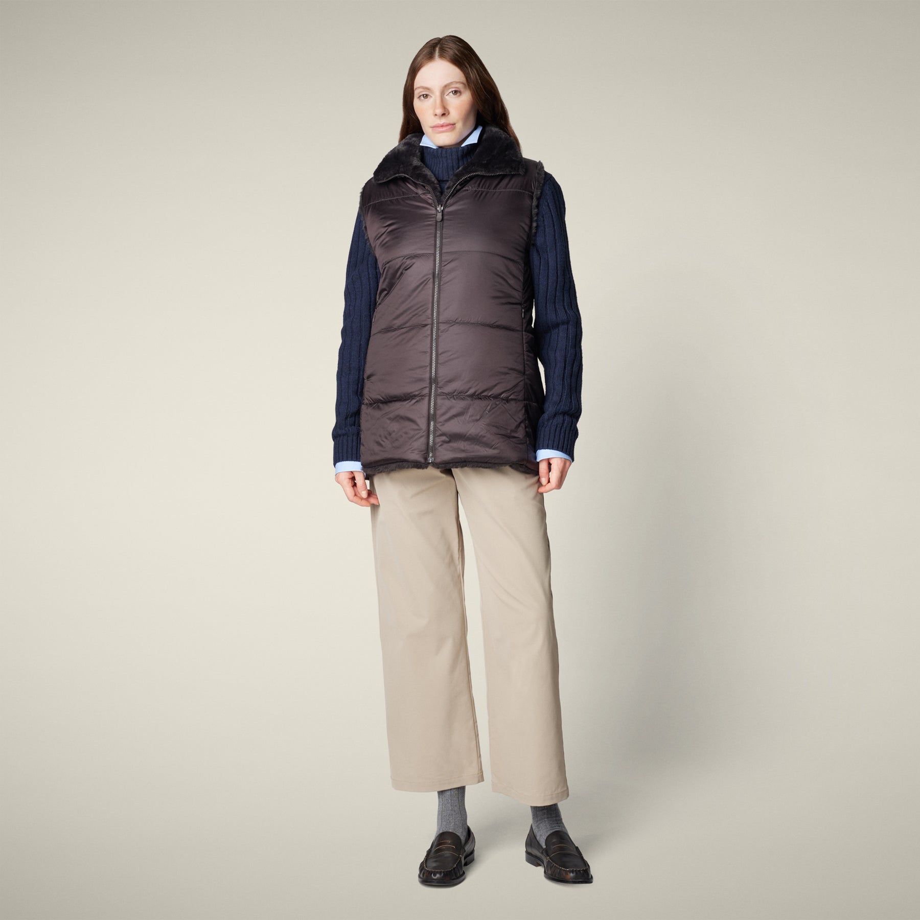 「NIVES」モデルのウィメンズ パファーベストで、瞬時にスタイルを変身させましょう。このリバーシブルデザインは、選択肢を倍増させ、どんなコーディネートも格上げします。キルティング面とふわふわのフェイクファー面を備えた、多機能なデザインが特徴です。スタンドカラー、2つのポケット、中央のジッパーにリバーシブルスライダー、カスタムプル、そしてコーディネートを完成させる同色の丸型ロゴが施されています。