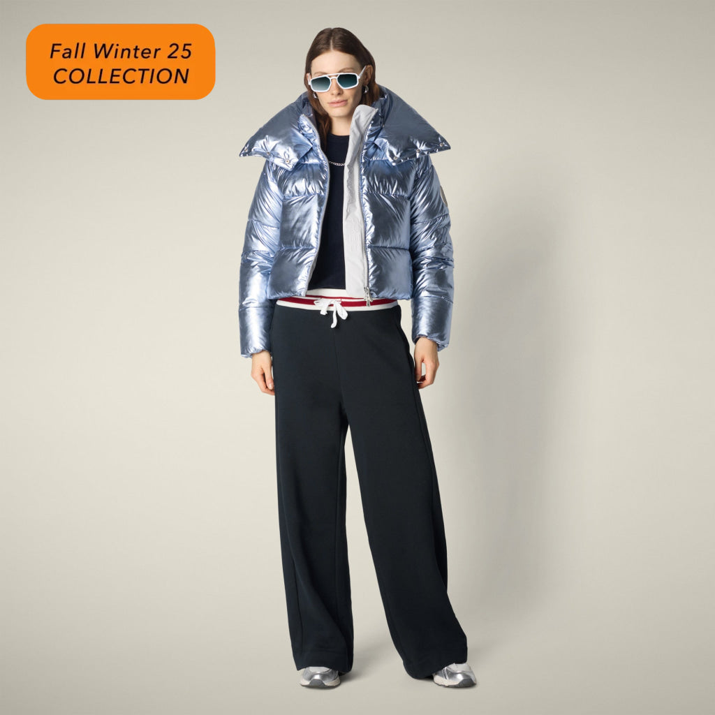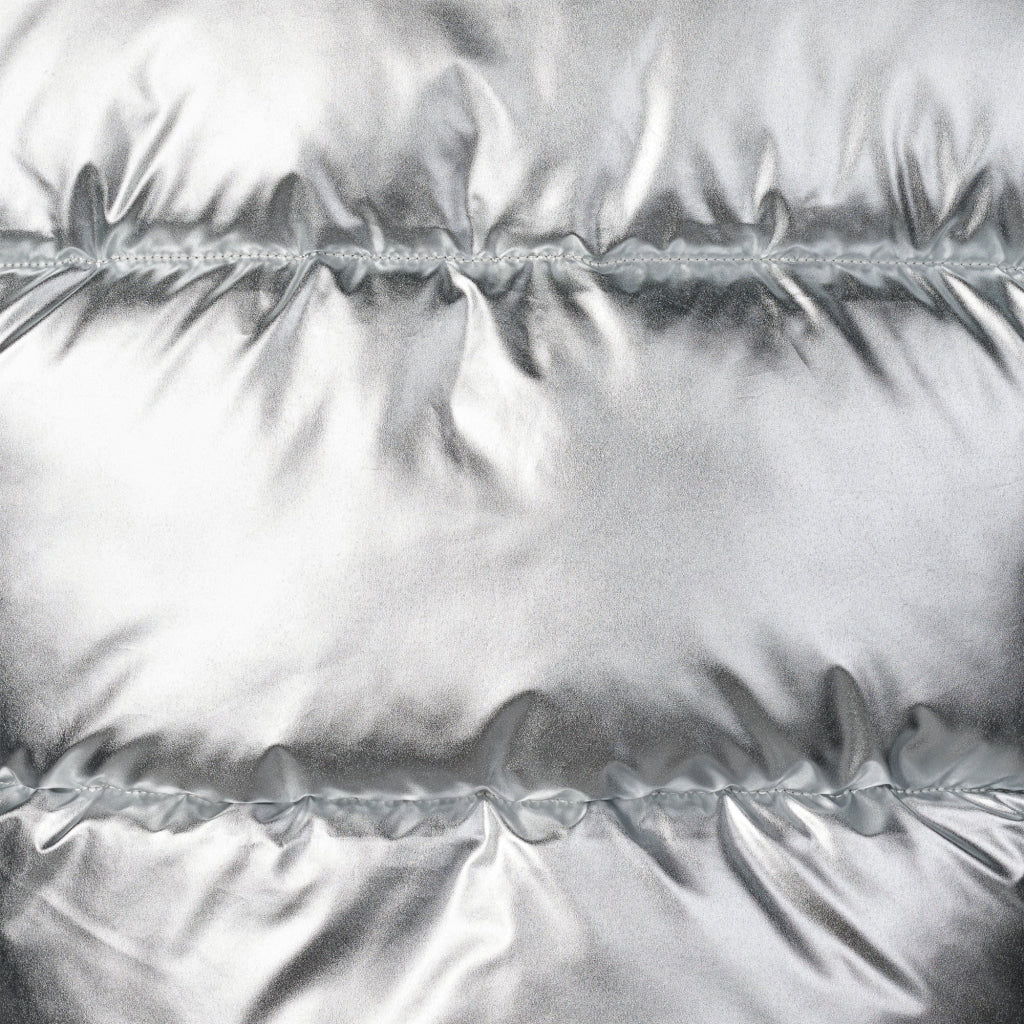 「GISELLE」モデルのウィメンズ パファージャケットは、クロップドカットと高光沢のシルバー仕上げが特徴的です。ダブルカラーにスナップボタンパネルを採用し、保護性を高めるために立てたり、リラックスしたスタイルのために折りたたんだりできます。調整可能なヘムと伸縮性のある袖口が快適性を確保し、同系色の丸型ロゴとカスタムジッパープルが、シグネチャーディテールでデザインを完成させます。